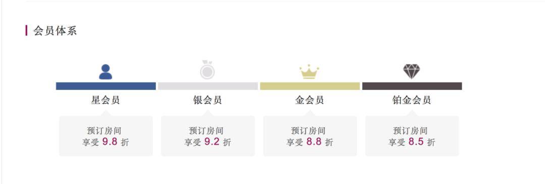 会员体系:从星会员到铂金会员,预定房间享受不同折扣,最高可享受8.5折。
