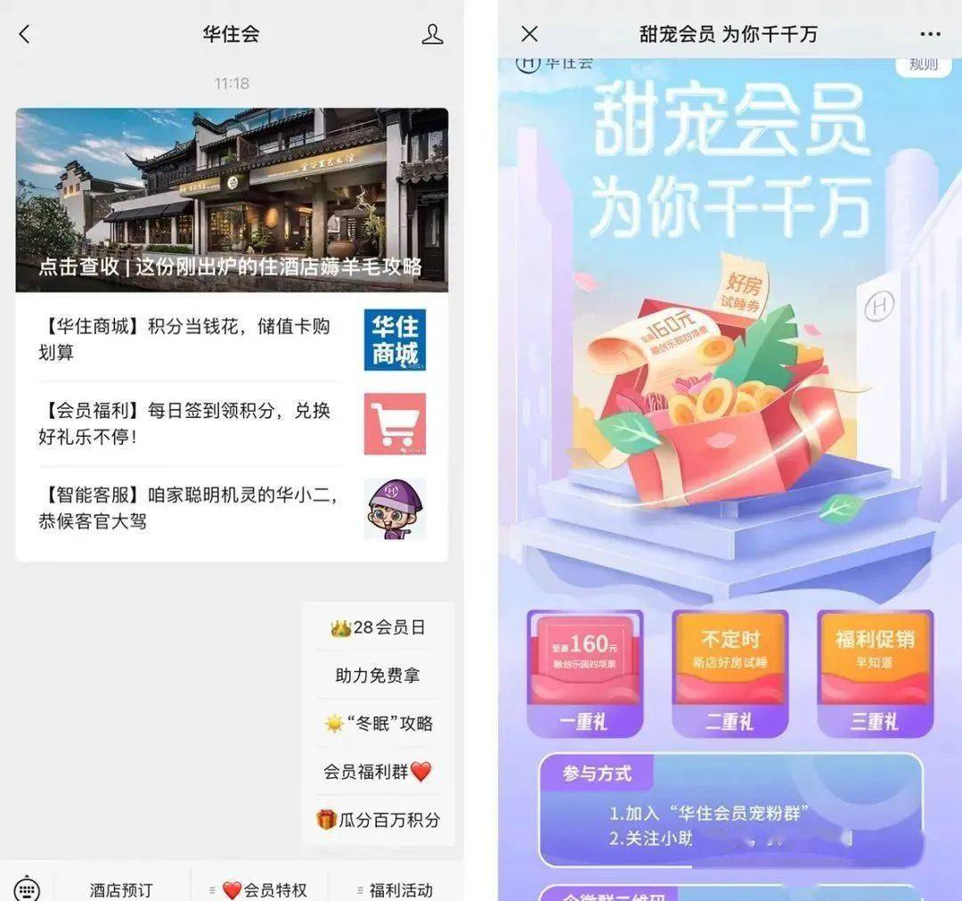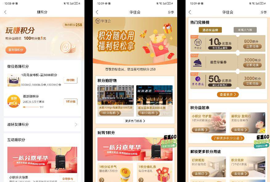 华住会为了激活与用户之间的互动,增强用户粘性,打破了传统“积分制”相对孤立、陈旧的模式。