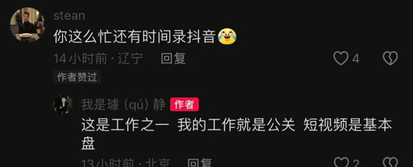 深谙用户情绪的璩静当然知道争议性话题对于用户的吸引力,也熟悉争议、流量与起号之间的强关联,而她甚至亲自在评论区与留言的网友互动回怼。