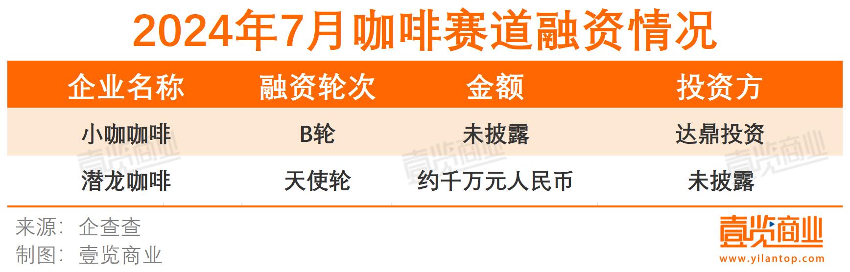 据壹览商业不完全统计,7月份咖啡赛道获得2起融资,获得融资的咖啡企业分别为小咖咖啡和潜龙咖啡,特别地,小咖咖啡此次是通过股权变更的方式,吸引了达鼎投资的青睐并获得了其注资。
