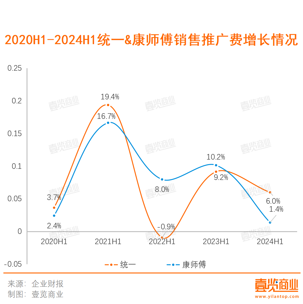 2024年H1,康师傅的销售总成本降低了2.4%,销售推广费用增长了1.4%,和其0.6%的营收增速是相对持平的,净利润却增长了16.2%。