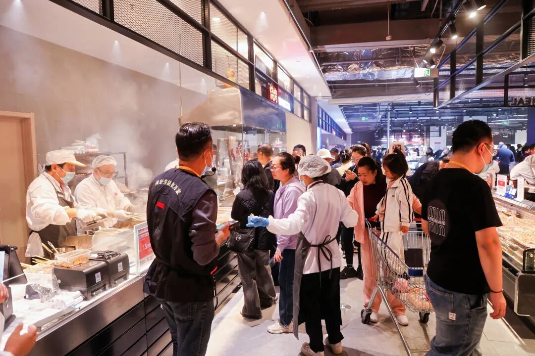 如果说嗅觉,是烟火气的一种表达方式,熟食、面点、轻食、切配菜、调理类,则是给顾客带来视觉+味觉的双重冲击。本次民盛店在华润万家全系统中首次推出整羊现场分割现烤,仅采购现烤炉就投资十几万元,让顾客能够目睹现切、现串、现烤的全过程,用市井烟火气拉近与顾客的距离,椒麻鸡、烤鸡、甜肠、鸭头、披萨、汉堡、日式料理、轻食餐饮等色香味俱全的现制食品,不仅勾动顾客的食欲,同时让顾客感受到看得见的安全感。