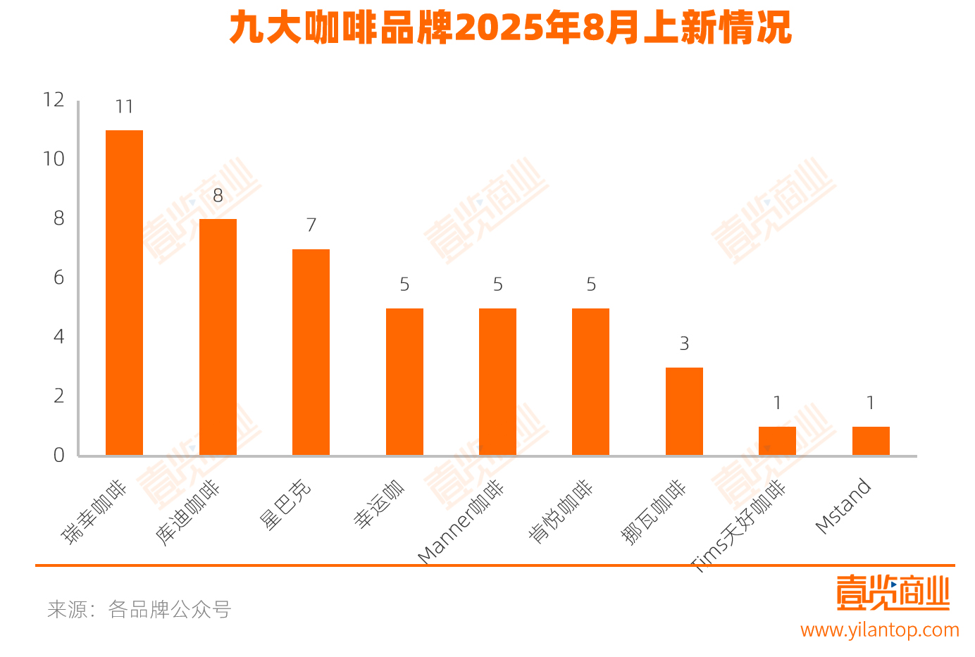 分品牌来看,瑞幸在8月的上新数量遥遥领先,共推出11款新品,成为最活跃的品牌。从月初的“鲜萃轻轻桂花”到月底的“鲜萃玫瑰撞奶”,基本覆盖了整个月份的消费节点。紧随其后的是库迪咖啡,上新8款产品,重点集中在果茶方向。星巴克推出7款新品,其中4款奶咖,主要围绕白桃、桂花两大元素展开。Manner咖啡、幸运咖与肯悦咖啡均推出5款新品,挪瓦咖啡、Tims天好咖啡和M stand仅有1-3款新品。