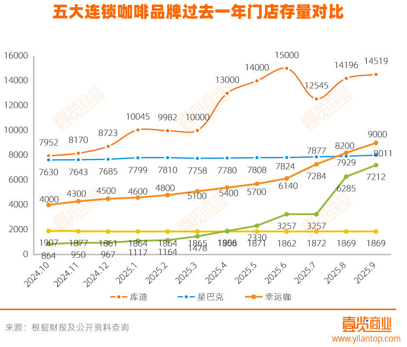 从个体动态看,部分品牌的拓店节奏出现明显变化。星巴克在本月新增159家门店,环比增长205.77%,显示出其重启积极扩张的策略;库迪咖啡则在9月新开563家门店,相比8月减少943家,降幅达62.61%,增速明显放缓;而幸运咖9月新增600家,相较前两个月上千家的规模,节奏略有收敛。