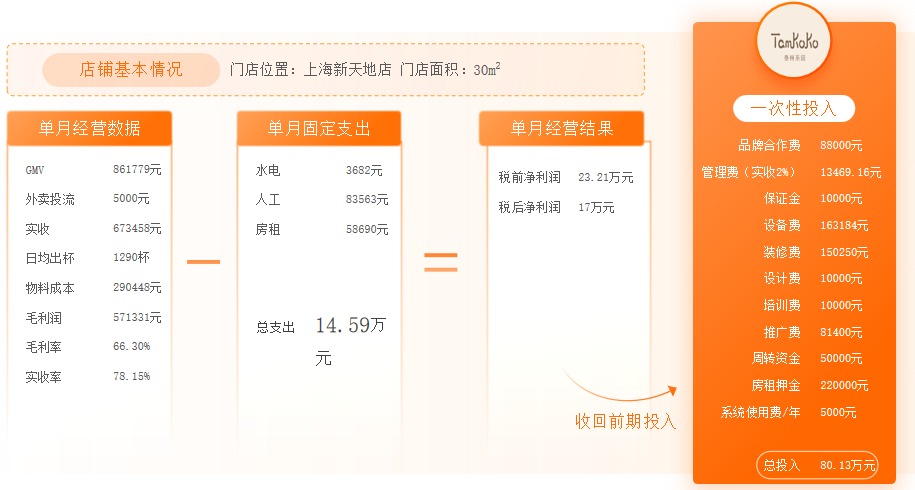 接下来,我们将以品牌自己公布的数据为基础,拆解泰柯单店的营收、成本、利润。