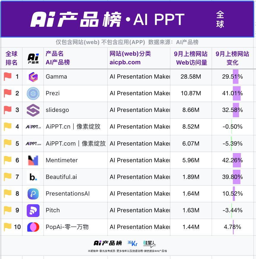 AI产品榜AI PPT产品榜单|图片来源:AI产品榜(aicpb.com)