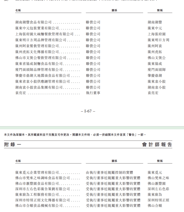招股书显示,袁记食品在信息披露期间,共向10家关联方公司进行采购,其中4家为联营公司,另外6家为受到到执行董事近亲属影响的企业。