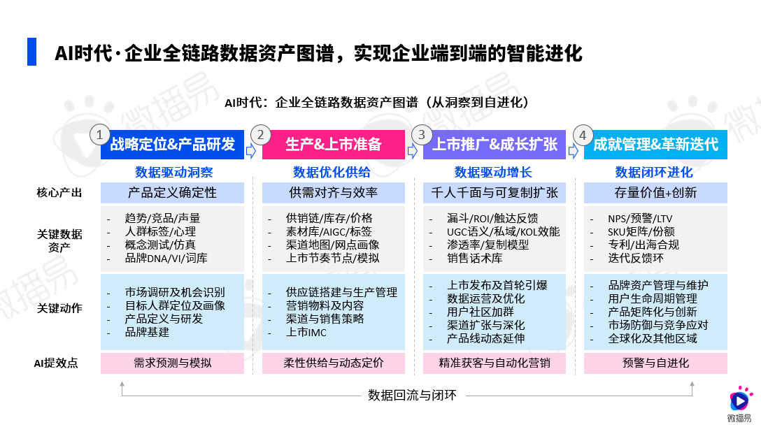 AI的真正价值在于其驱动的数据能力。通过构建贯穿战略、内容生产、投放触达、效果迭代全生命周期的数字底座,AI得以实现营销的“端到端智能进化”。数据不再是孤岛,而是贯穿始终的智能驱动力,为品牌的每一次决策提供科学依据。