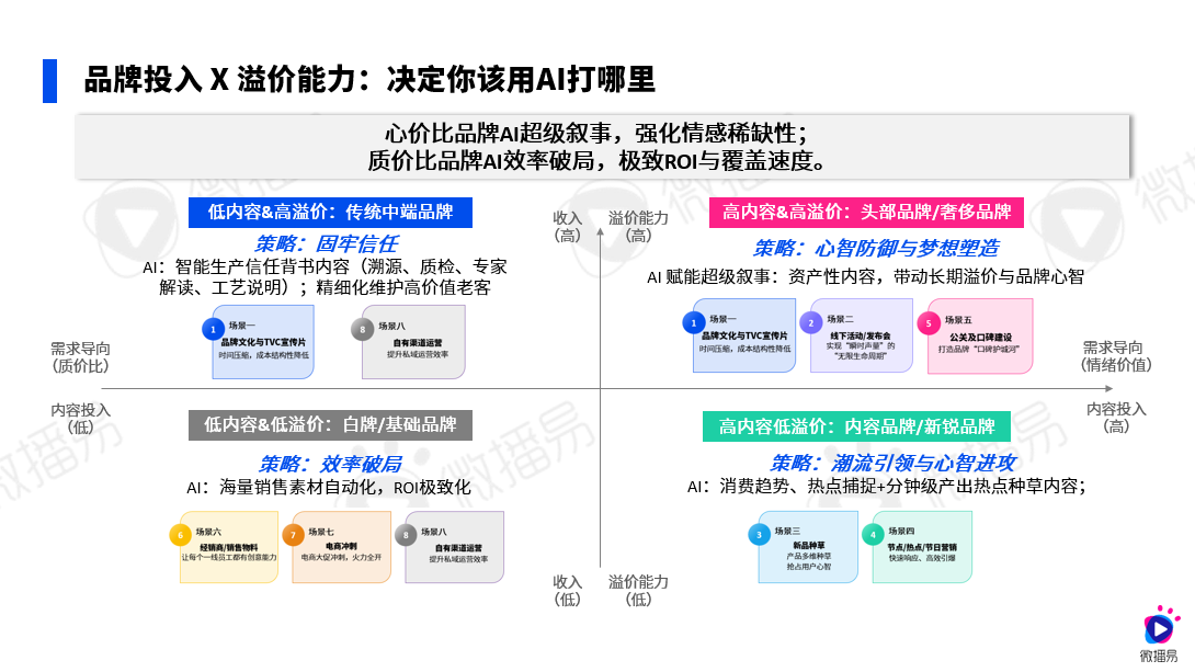 白皮书聚焦八大核心营销场景,提供AI驱动的效能升级路径,适合高溢价品牌(如高端美妆)强化超级叙事能力,低溢价品牌(如日用品)以效率突围。