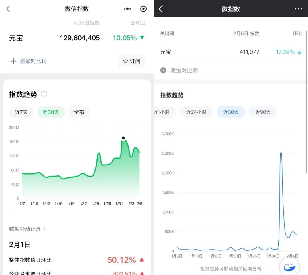 不过,从微信指数、微博指数也能看出,元宝的“红包效应”正在快速衰减。随着千问的奶茶攻势来袭,元宝的市场声势有可能会进一步回落。