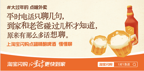基于#大过年的 点啥外卖#这一主题,淘宝闪购将洞察落地为一段段质朴的文案。