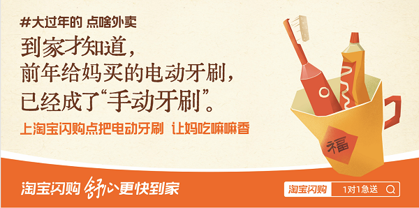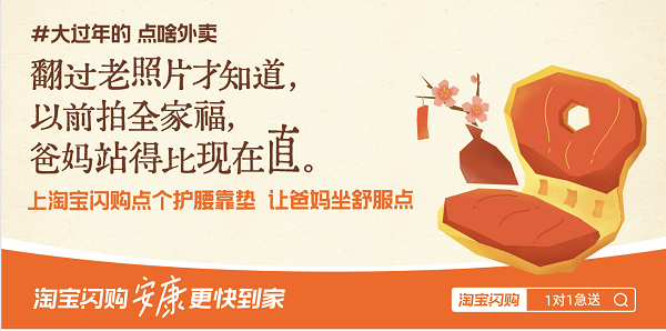 首先是创意共情,解构春节实际需求。在中国人的情感表达中,关心往往含蓄,爱意常藏于行动中。#大过年的 点啥外卖#的系列文案都紧扣“总有些需求等你到家去发现”的情感洞察。在创意共情的基础上,淘宝闪购用“更快到家”的承诺去回应这些细腻的察觉,真切贴合国人表达爱的方式。