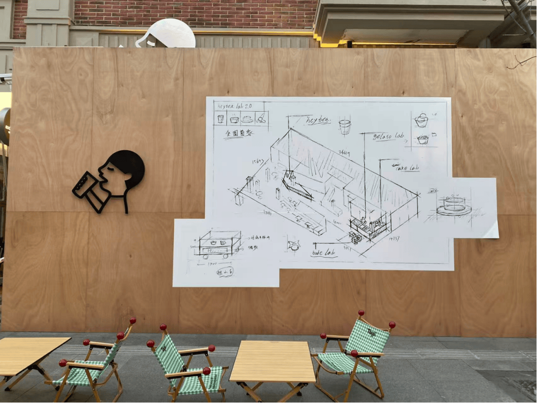 从目前流出的设计图看,这家Lab 2.0门店或将成为喜茶体系内品类最齐全的一间门店形态。除了核心茶饮,还囊括中式冰淇淋、蛋糕、可颂挞等烘焙甜品线,把喜茶近几年所有“副线探索”集中进一个空间里。