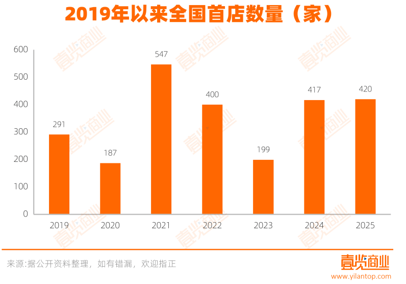 据壹览商业不完全统计,2025年,全国36个城市至少开出420家首店,同比增长7.19%。
