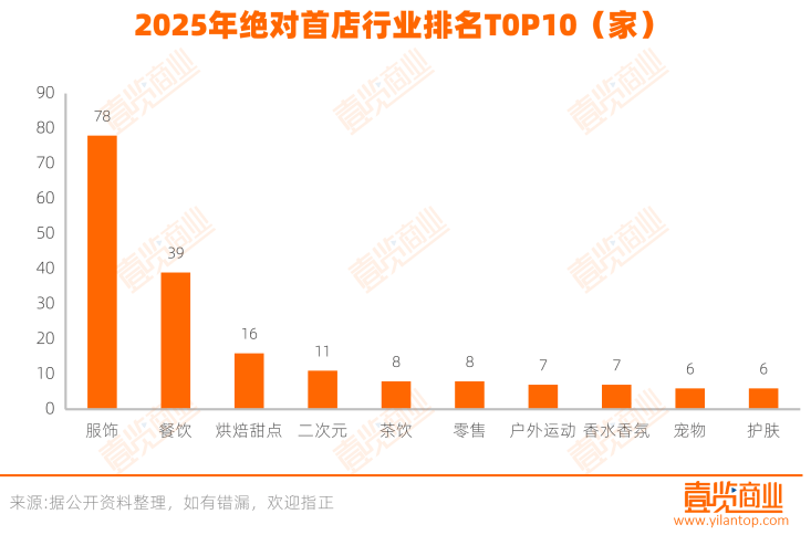 据壹览商业不完全统计,2025年共开出263家绝对首店,尽管对比2024年314家的绝对首店下降了16.24%。