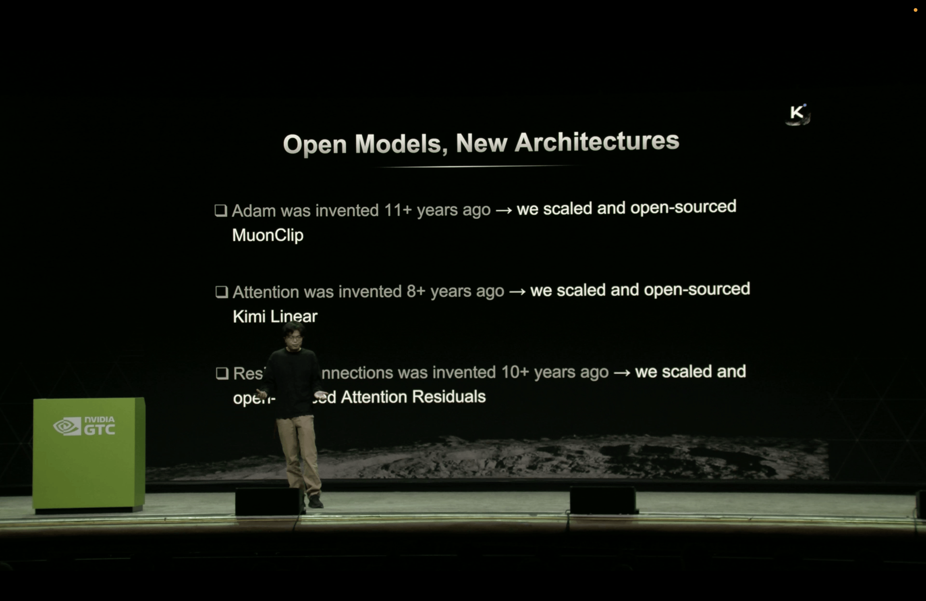 北京时间3月18日凌晨,月之暗面创始人杨植麟在英伟达 GTC 2026大会上首次系统披露了Kimi K2.5的技术路线图,其核心指向“更有效率的规模化”。