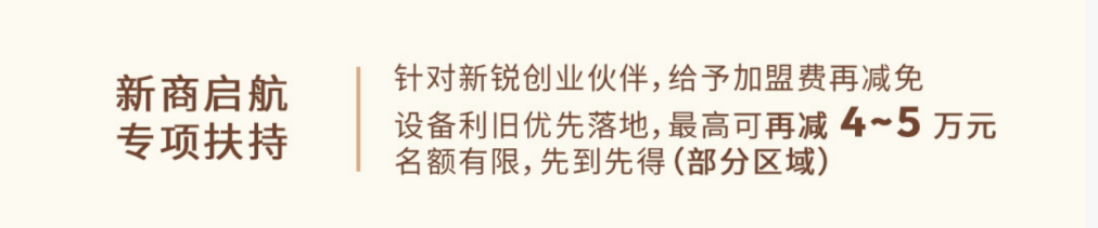 首先,新商启航专项扶持。在加盟费直降的基础上,新政对新加盟商再减加盟费,同时设备利旧优先落地,综合下来最高可再节省4-5万元的费用。从加盟商视角看,这进一步减少了初始现金支出,并赋予了设备选择上的弹性。