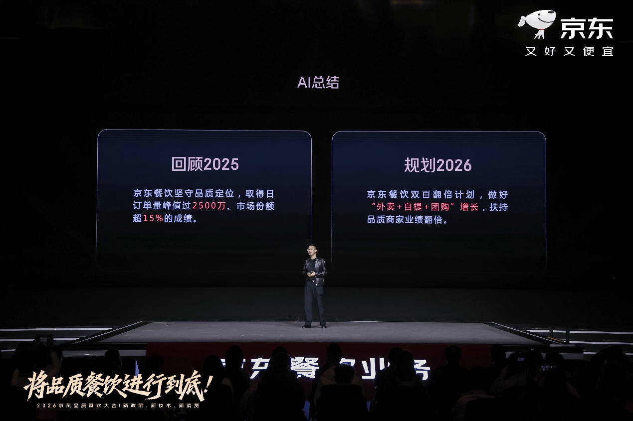 自2025年京东发起扶持商家的“双百计划”以来,已有近400个餐饮品牌在京东外卖订单量突破百万单。京东品质餐饮大会现场宣布,2026年正式启动“双百翻倍计划”,从“外卖”走向更广阔的“餐饮”,全面深化“外卖+自提+团购”餐饮全场景精细化运营;基于“服务、产品、品牌”三大共建,扶持更多品质餐饮商家2026年业绩翻倍,共赢增长。