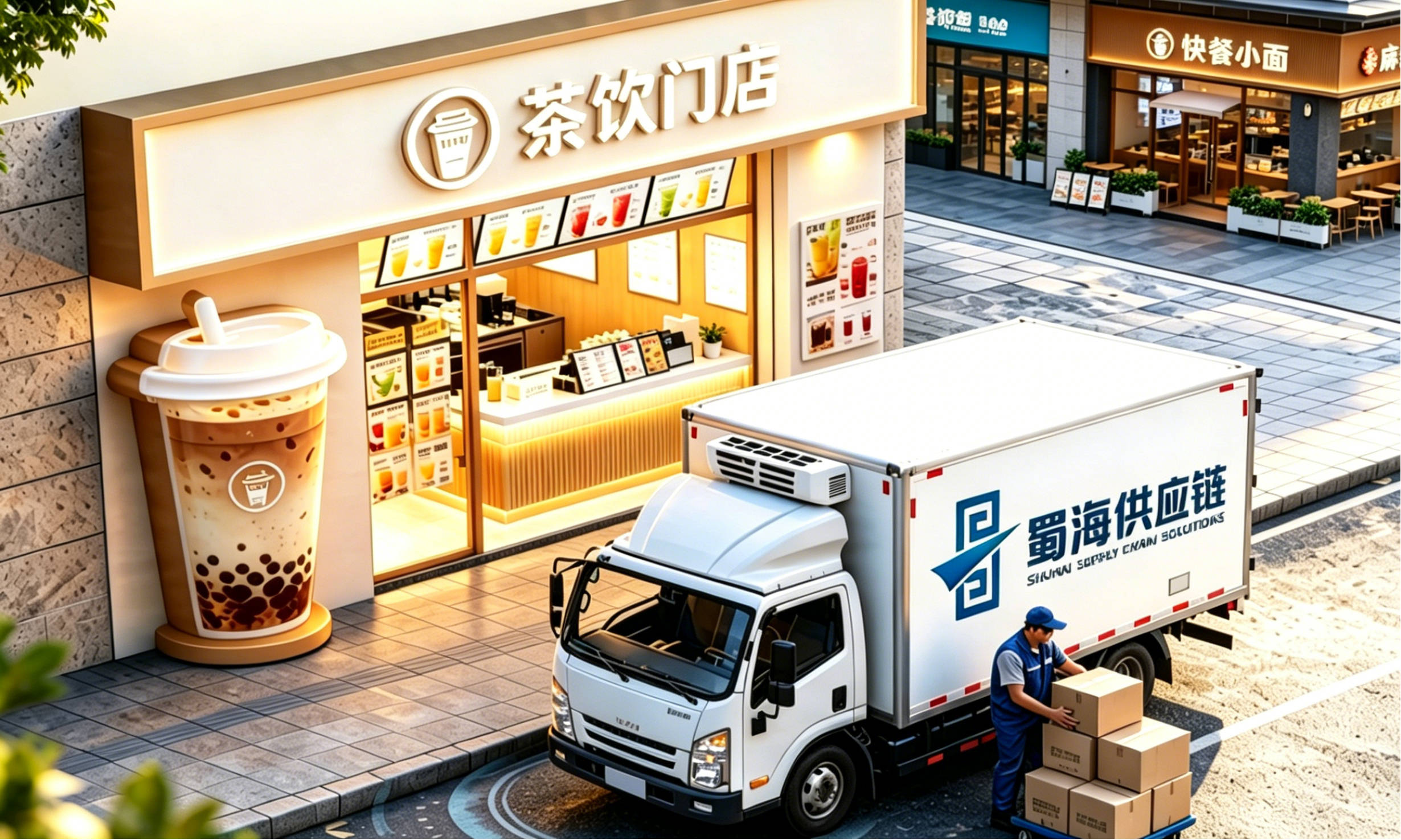 某头部茶饮品牌2021年启动全国扩张时,蜀海为其打造了双层仓网体系,针对末端配送成本偏高的问题,创新采用「专车 + 拼车」组合配送模式,进一步优化单店物流成本,成功降低约8%的物流支出。